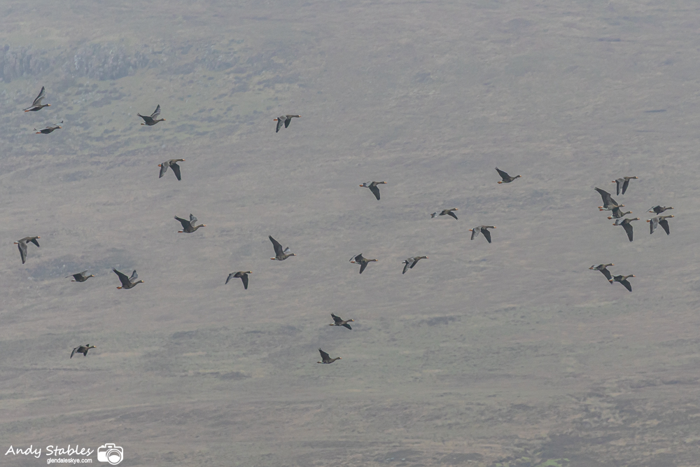 Huge movement of pink-footed geese south over Glendale today: 40 through Fasach and 32 through Upper Milovaig at 8am, 460+ through Lower Milovaig between 8:30am and 10am, 110 past Neist Point, late morning, 70+ over Lephin, mid afternoon.